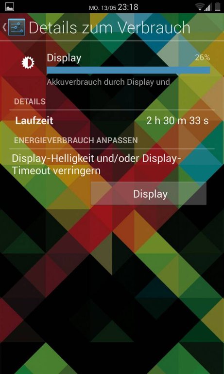 Habe mit meine Tracks 2:10h mit GPS aufgezeichnet, maps viel benutzt und Internet Abundzu. Synchron war an und trotzdem 2:30h Display on