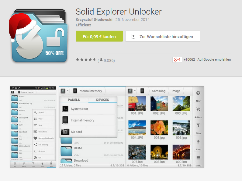 Solid Explorer Unlocker gibt es heute für 0,99€.