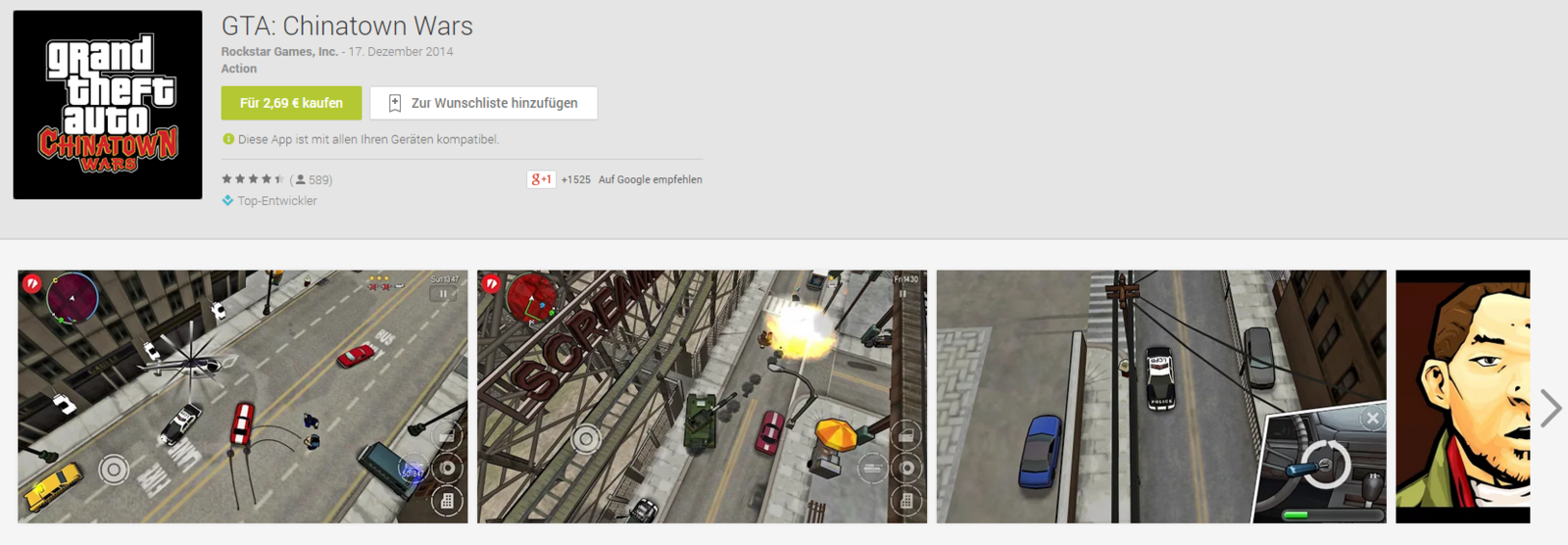 GTA: Chinatown Wars für 2,69€:[size=24]GTA: Chinatown Wars im PlayStore![/SIZE]