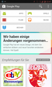 Eine weitere Neuerung in diesem Zusammenhang, ist das sich die Übersichtsseite nun füllt. Google zeigt nun Empfehlungen für den Nutzer an und zwar aus allen Kategorien (Apps, Musik, Bücher und Filme). Eigentlich eine super Sache, oder?