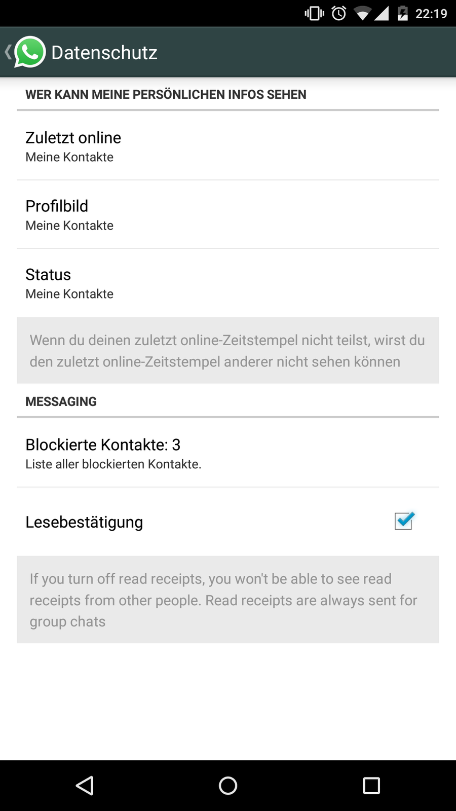 Wenn man diese Funktion aktiviert sieht man aber auch den Status von anderen nicht mehr