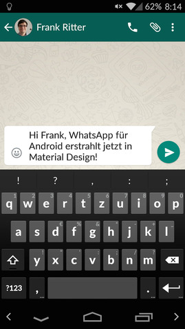 in der neuesten Version von Whatsapp (2.12.38) ist das Material-Design drin