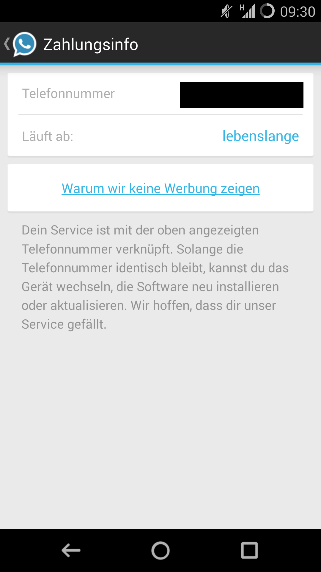 Wer sich ganz am Anfang vom IPhone und Whatsapp angemeldet hat, hat eine Lifetime Lizenz kostenlos gekommen.