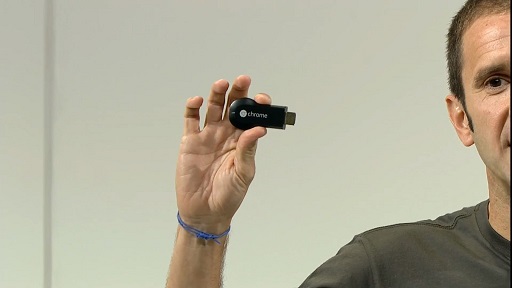 Google hat bei seiner Vorstellung am 24.07.2013 noch ein weiteres Stück Technik vorgestellt und zwar Chromecast. Bei Chromcast handelt sich um ein HDMI-Dongle für TV-Geräte mit einem HDMI-Anschluss, der Dongle ist cloudbasiert. Man kann also verschiedene Inhalte, vor allem Videos, von mobilen Geräten auf den TV übertragen