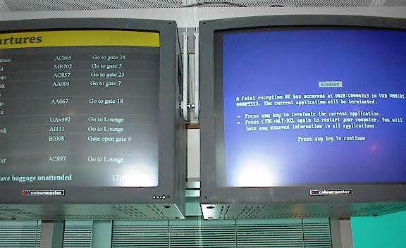 Auch am Boden kommt nur modernste Technik zum Einsatz. Sogar die Anzeige-Monitore im Flughafen arbeiten mit sehr zuverlässigen Microsoft- Betriebssystemen: