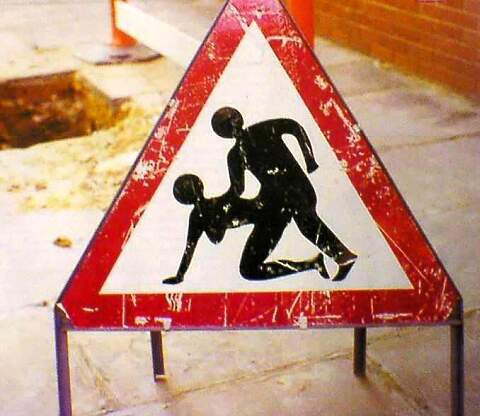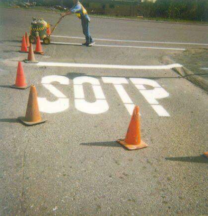In Wirklichkeit arbeiten im Straßenbau nur hochqualifizierte Fachkräfte, die sogar in der Lage sind kurze Wörter zu schreiben. Mit viel Weitblick orientieren sie sich dabei bereits an der nächsten Rechschreibreform, die im Jahr 2800 kommen wird: