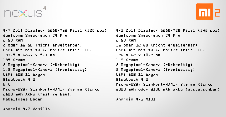 Softwaretechnisch spricht eigentlich alles für das Nexus 4. Die jüngsten Benchmarks und Reviews bzgl. des Akkus