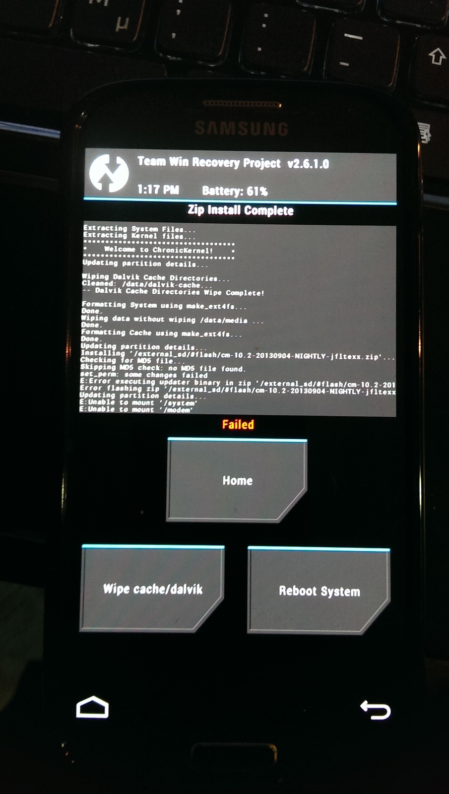 auf verschiedenen Recovery Versionen von TWRP über Philz bis zum Stock CWM erhalte ich einen Fehler Status 7.
