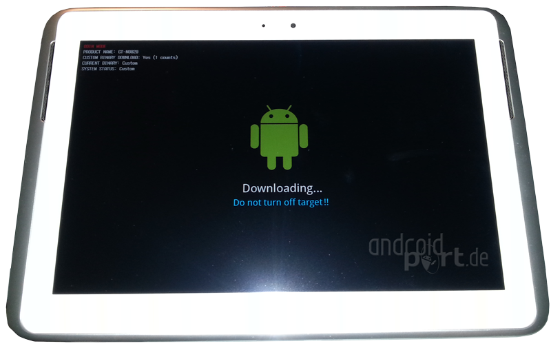 2. Bringe das Note in den Downlodmodus, drücke dazu "Power" + "Vol. down"