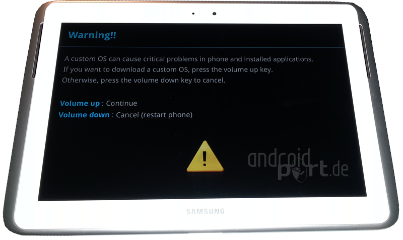 2. Bringe dein Note 10.1. LTE in den Downloadmodus, drücke dazu "Power" + Vol. down"