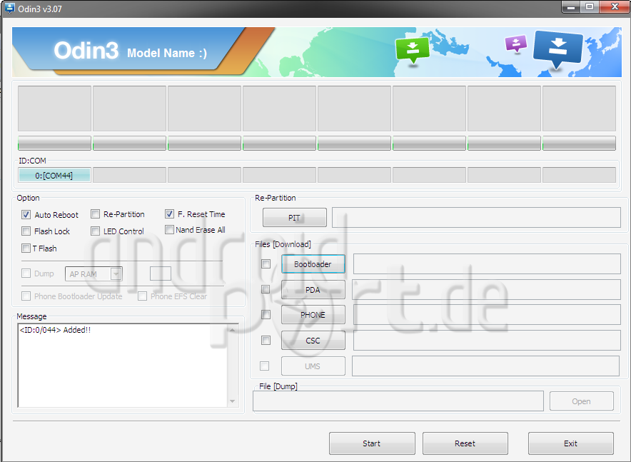 4. Starte Odin am PC und verbinde dein Tablet mittels mitgeliefertem Kabel