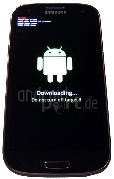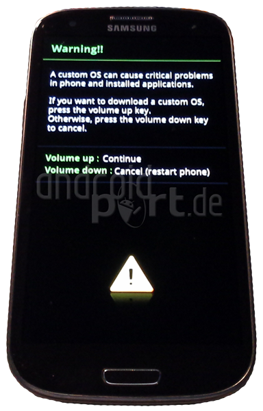 2. Bringe dein S3 in den Downlodmodus, drücke dazu "Power" + "Vol. down" + "Home-Button"
