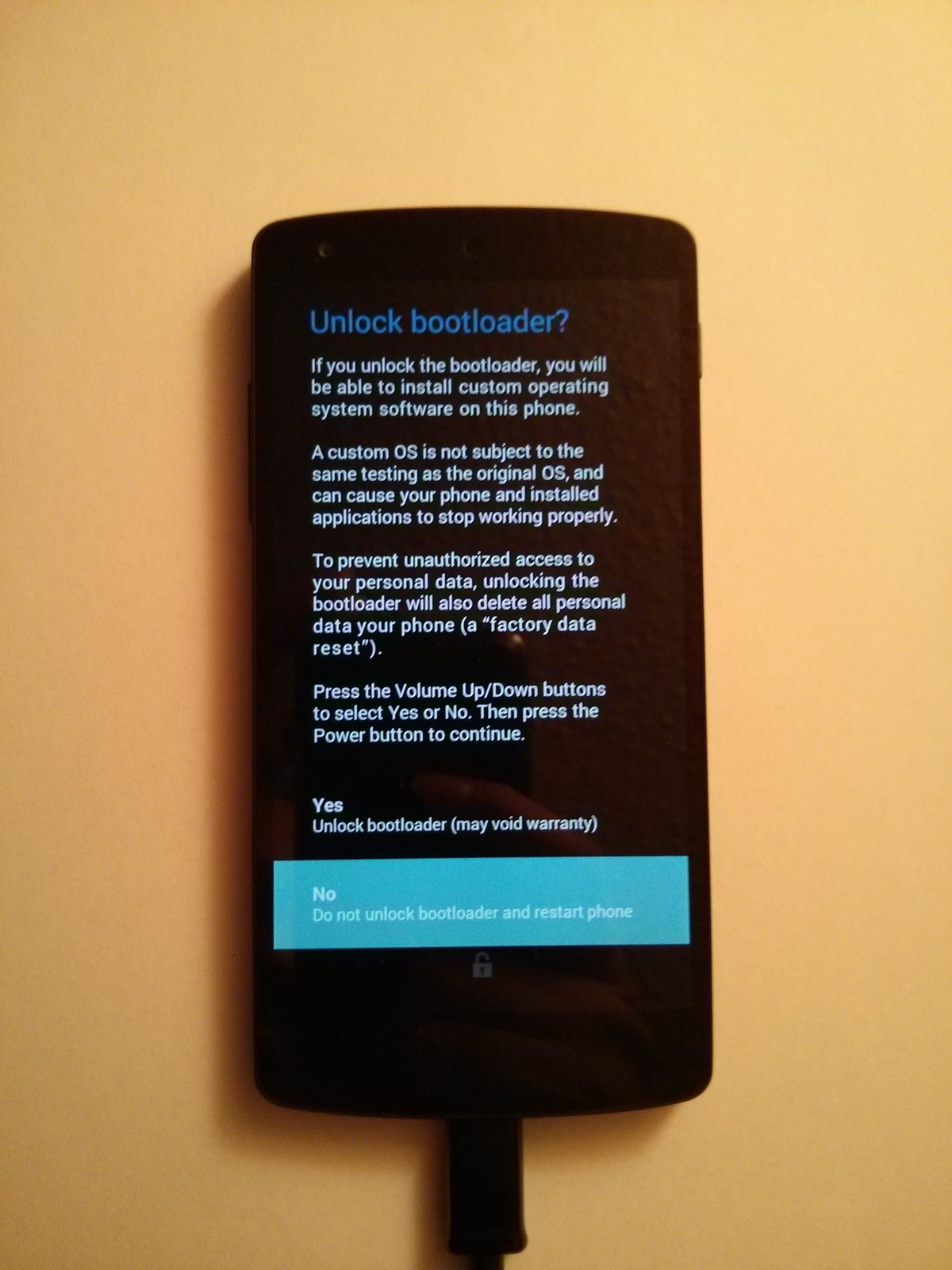 [size=18][COLOR=#ff0000]ACHTUNG! [/COLOR][/SIZE][color=#FF0000][size=18]Beim Bootloader Unlock, werden alle Daten auf dem gesamten N5 gelöscht!