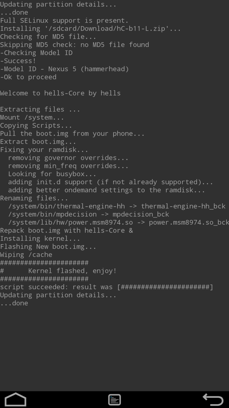 Also der neue Kernel rennt wie Sau!!!Ich habe optimale Laufzeiten und ein Schwung auf dem N5 , hat es meiner Meinung auch gebracht!!!
