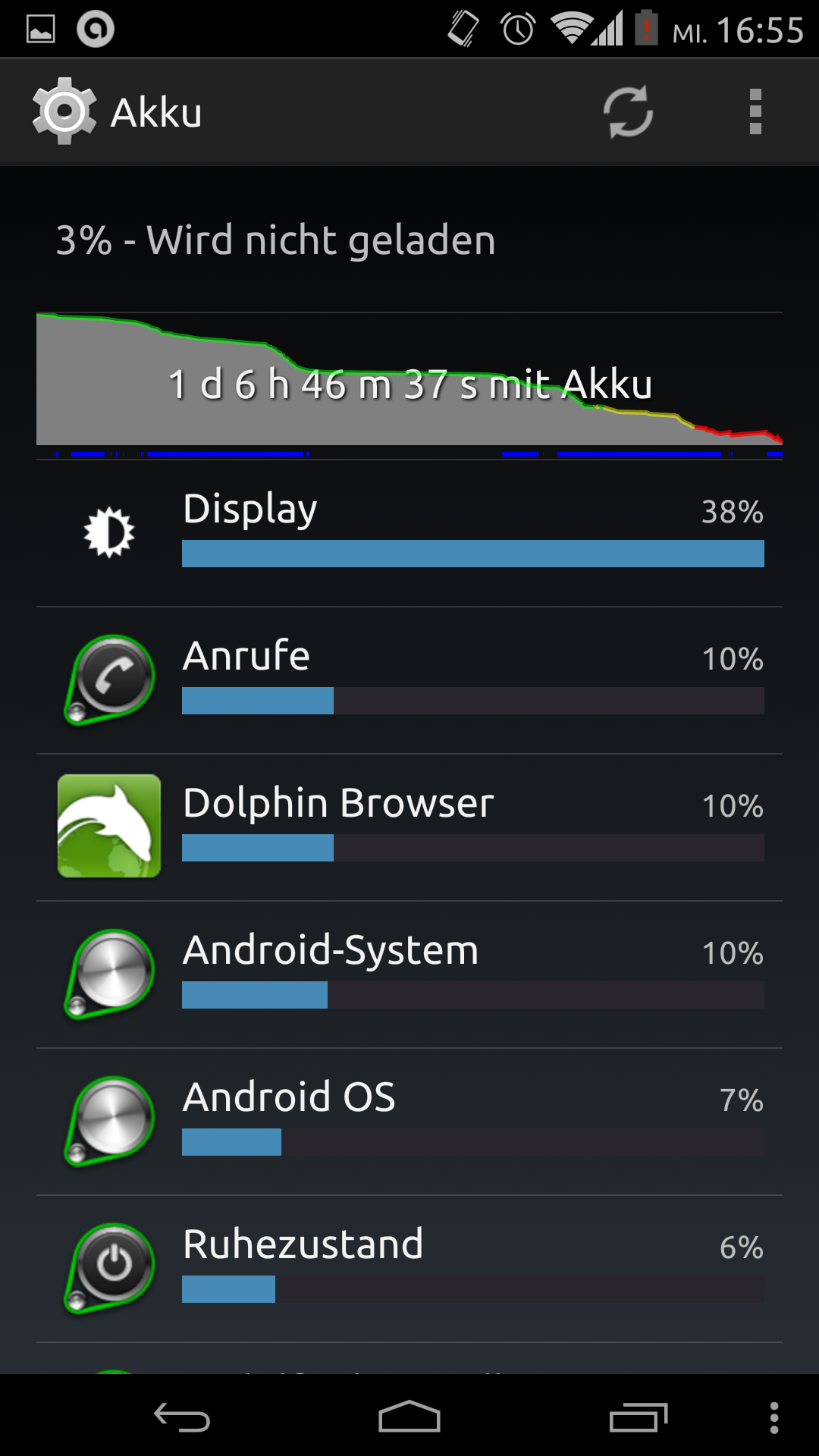 Also wenn's gut läuft schaffe ich max. 4Std. DoT aber das ist auch schon das höchste der Gefühle. Ka. wie Ihr hier 6 Std. hinbekommt. Ist mir ein Rätsel. Vielleicht liegt es daran, dass ich mich zu 80-90% im Wlan befinde?!