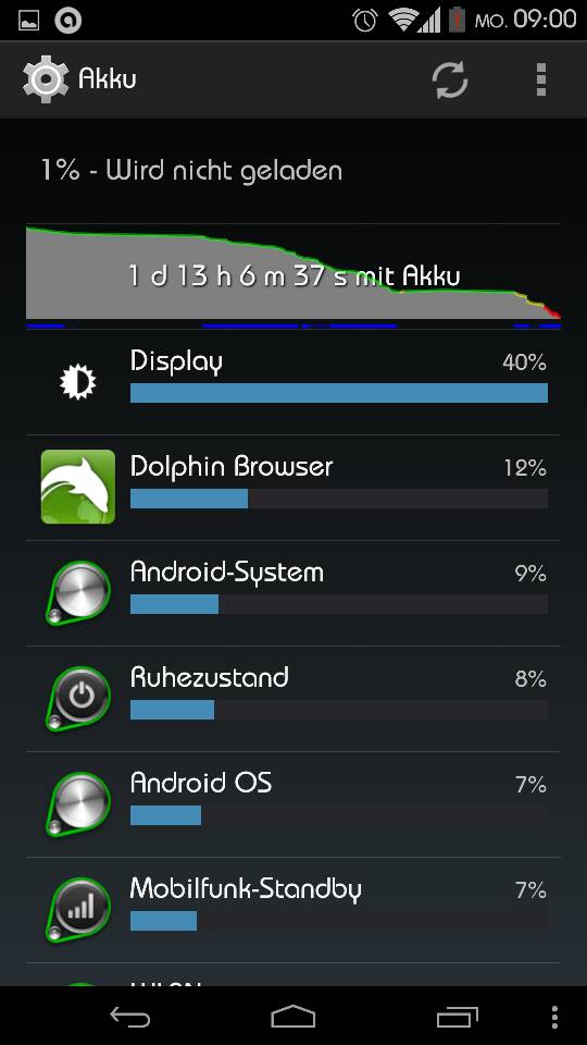 Mit dem b2 liege ich seit heute morgen ca. 6:30 Uhr bis jetzt bei 80% (1Std. Dot) bei ungefähr gleicher Nutzung. Werde es mal weiter beobachten.
