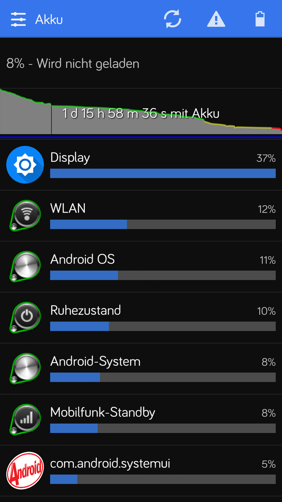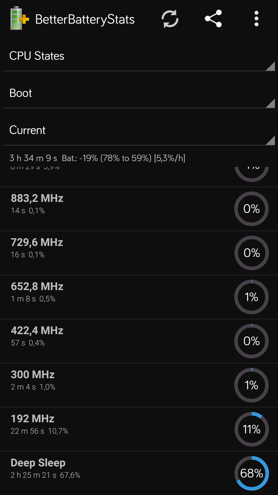In der Nacht vergessen das Display auszumachen. Wie in meinen Screenshots hier. Ansonsten käme ich auf 2,5-4,5 Stunden. Weil ich das Handy in der Zeit auch wirklich beanspruche.