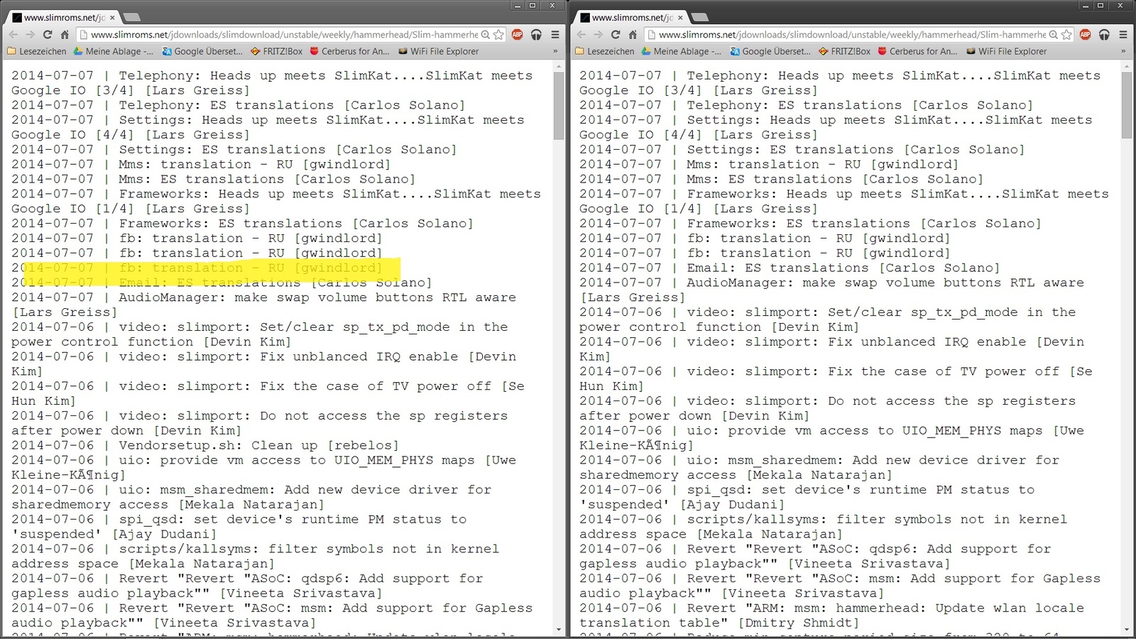 • Stock SlimKat neuste merges/commits etc .... echten changelog gibbet nich.