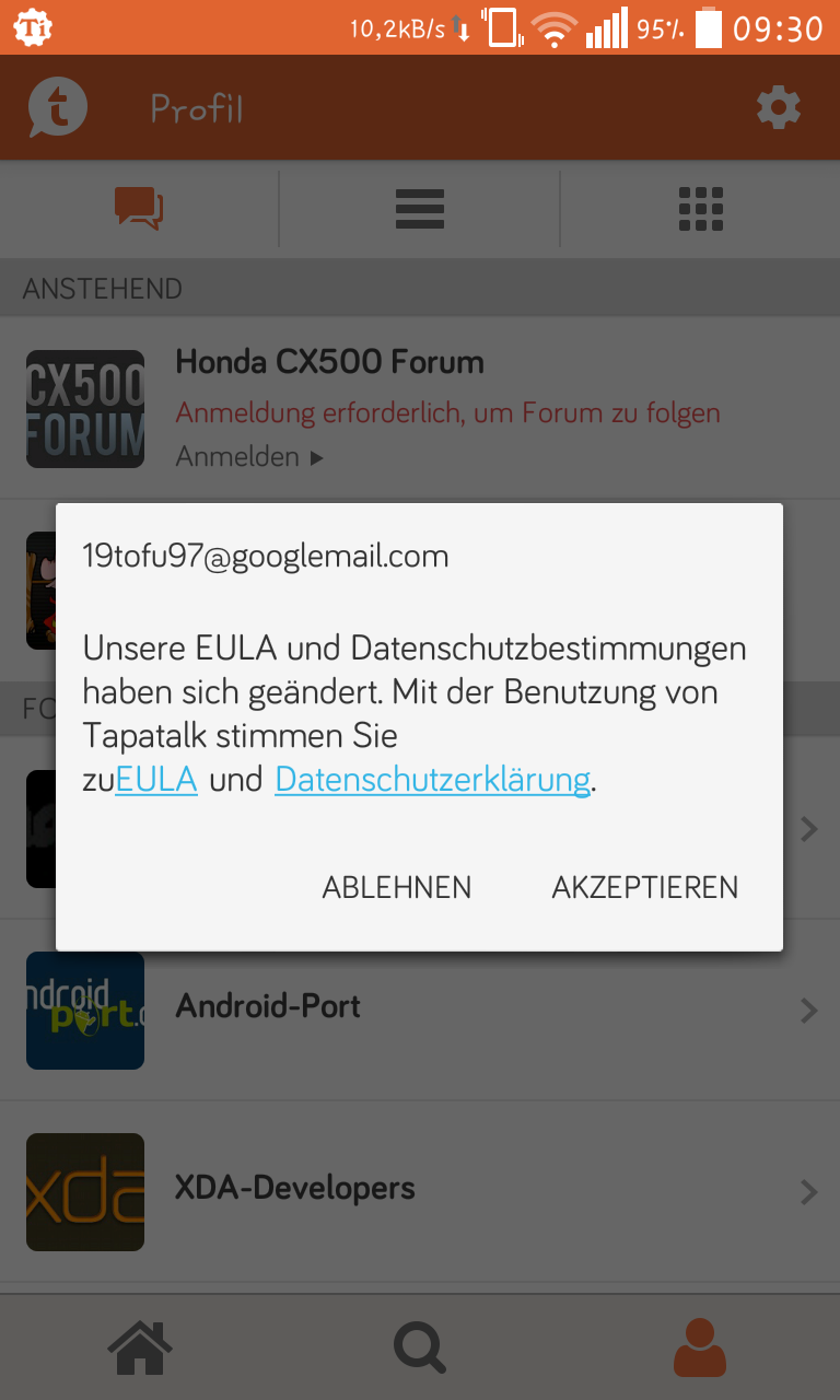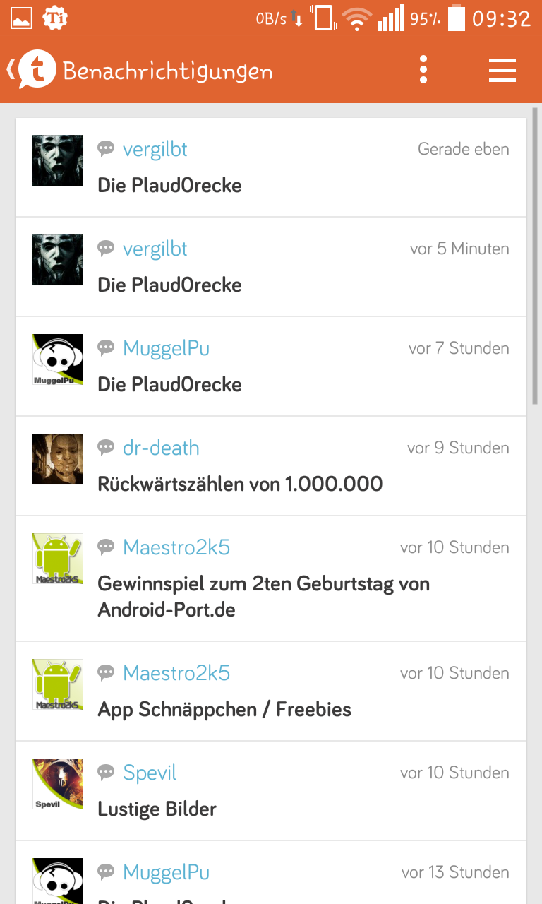 Kommen bei euch Benachrichtigungen von tapatalk in der statusleiste?