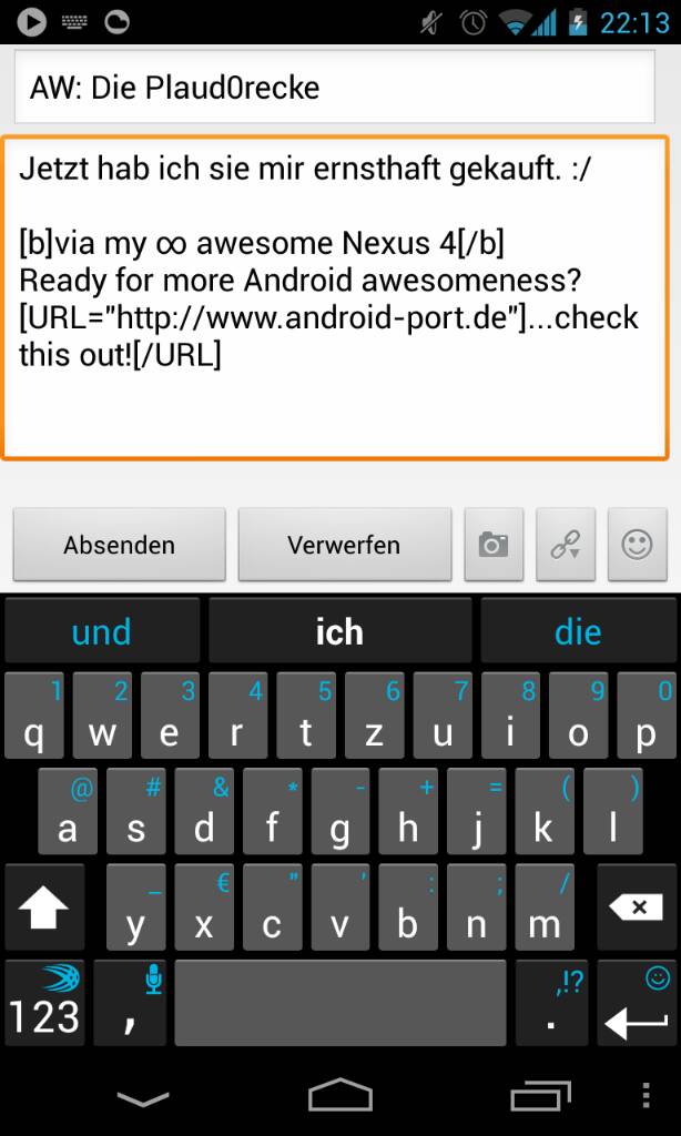 • Swiftkey läuft so gut dass ich einfach irgendwas schreiben will