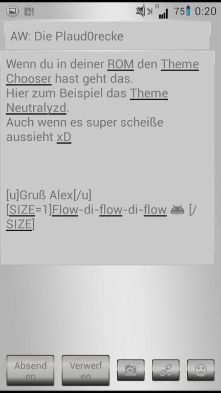 Saka, du kennst dich doch aus - ist es möglich die Statusbar (also Farbe) zu ändern? Ohne das man ne spezielle Rom installiert mein ich natürlich