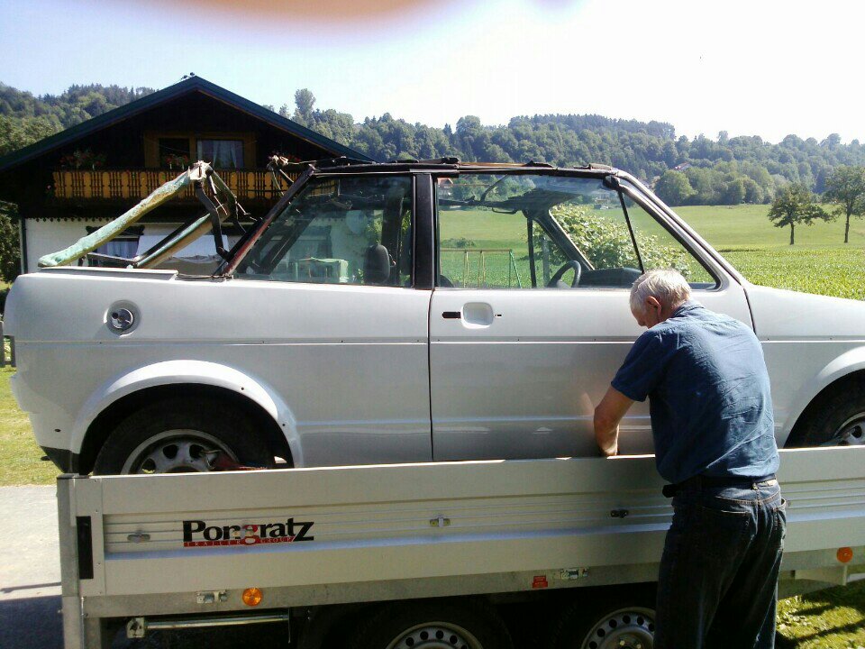 Verdeck kommt ein neues drauf. Hab ich schon daheim liegen. Und der Rest muss noch zusammengebaut werden ![]()