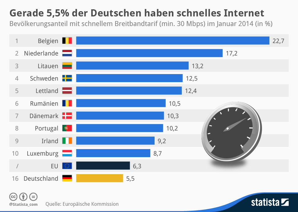 Seht ihr das nicht gerade ein wenig falsch? Ich persönlich gehöre auch zu den 5%, könntest zwar schnelleres bekommen aber das brauch ich einfach nicht. Dies Statistik hört sich ja erstmal schlecht an, aber ich denk das viele bewusst eine schwache Geschwindigkeit nutzen.