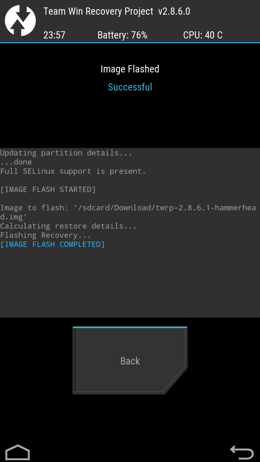 -Prevent duplicate page overlays such as multiple lock screens (mdmower)Note: As always, be sure your custom theme is up to date (or remove your custom theme) before updating TWRP.