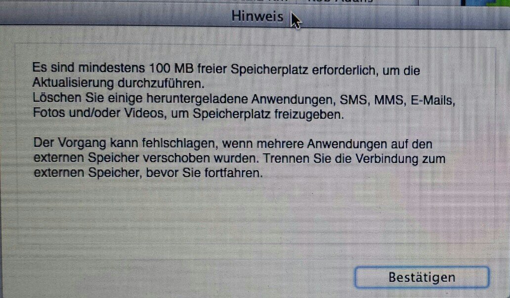 Aktualisierung klappt wegen angeblichen Speichermagels nicht