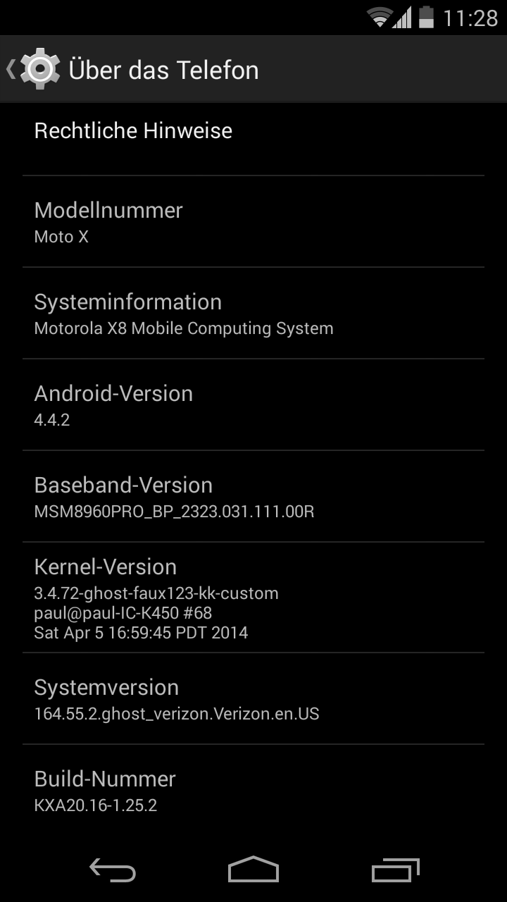 Mit der deutschen Stock Firmware (Android 4.4.2 Blur_Version.163.44.2.ghost_row.Retail.en.DE) funktioniert der Kernel ja nicht, da Motorola die Kernel Sourcen für das XT1052 noch nicht freigegeben hat.