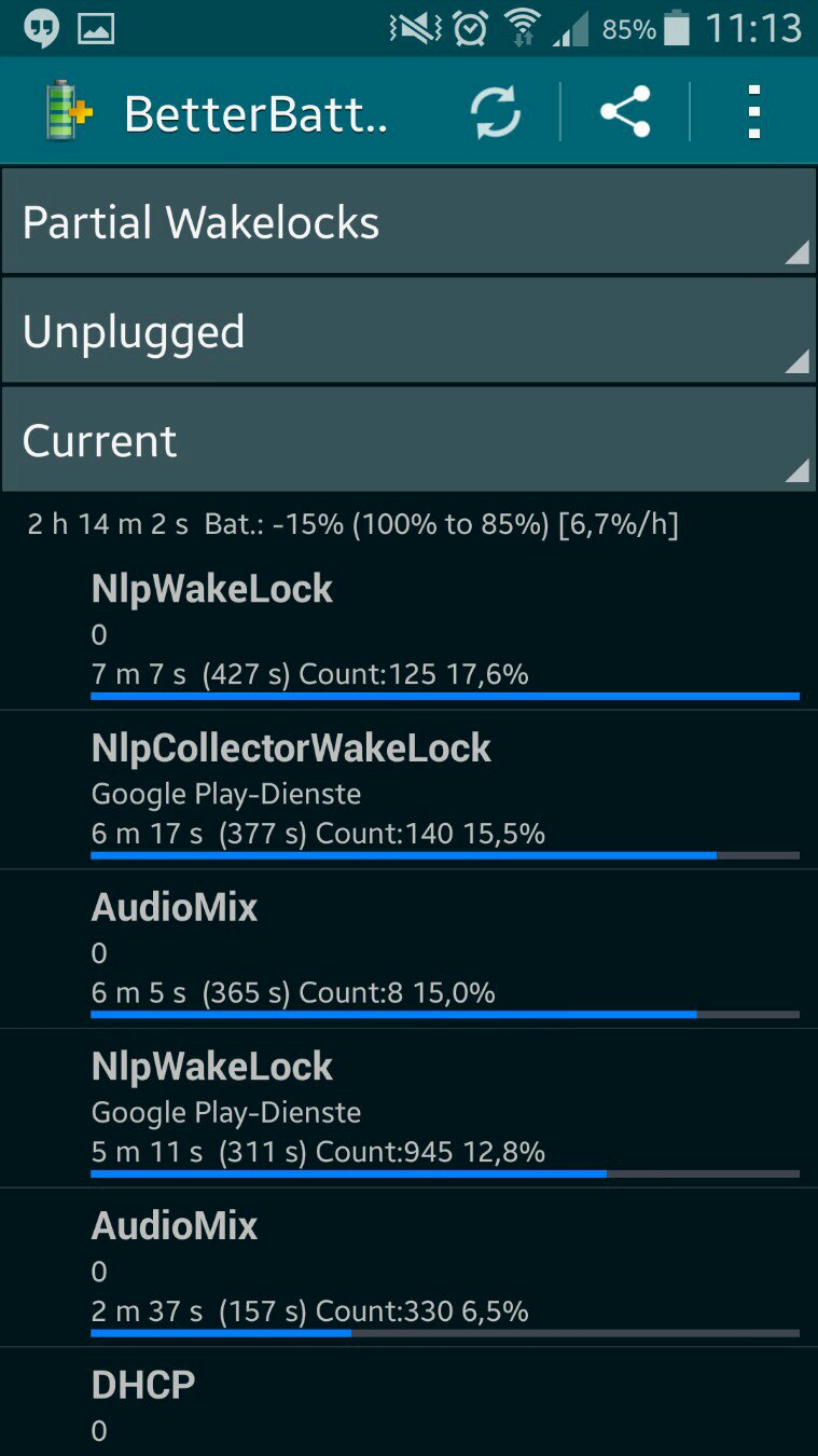 bisher eigentlich immer gute leistung , seit letztem update (glaubANG2) komm ich nicht mehr über den tag , handy wird auch heisser