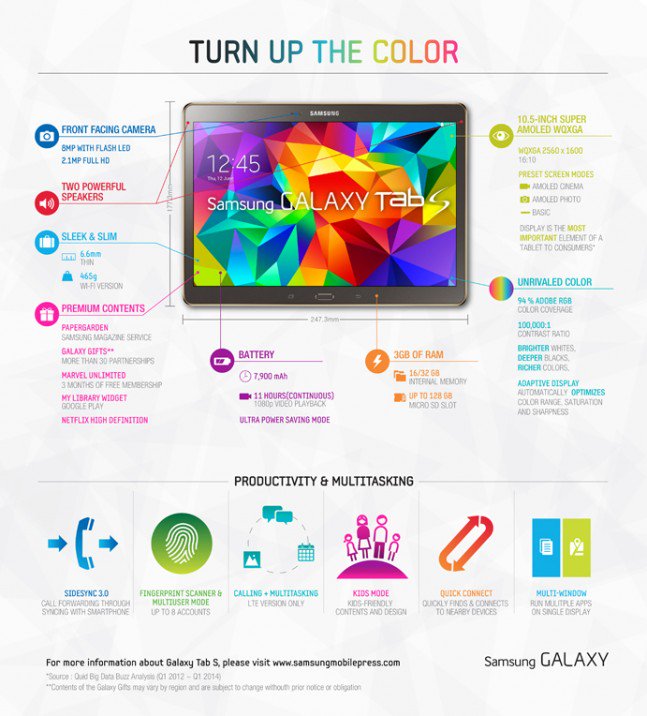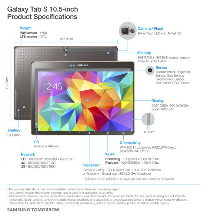 Da sind sie nun, die Tabs der "S" Reihe von Samsung. Wie ich gestern hier https://www.android-port.de/threads/samsun…s-geleakt.4682/schon geschrieben habe, gibt es heute nun die offiziellen Fakten zu den Tabs der "S" Reihe. Beide Modelle - also das Tab S 8,4 und das Tab S 10,5 kommen mit einem brillianten SAMOLED Display daher. Dabei hat Samsung darauf geachtet, dass Display auch bei Sonneneinstrahlung durch Erhöhung der Kontraste gut ablesbar zu machen. Beide Tabs sollen rund 11 Stunden im Betrieb durchhalten. Bei den Preisen für die Tabs scheint Samsung mal einen anderen Weg einzuschlagen, denn für das Tab S 8,4-16GB verlangt man 399 Dollar/295€, für das 10,5 mit 16GB werden hingegen 499 Dollar/369€ fällig. Wie und wann die Tabs auch nach Deutschland kommen, dazu gibt es aktuell noch keine Infos.Und hier noch die offiziellen Specs der Tab S Geräte: