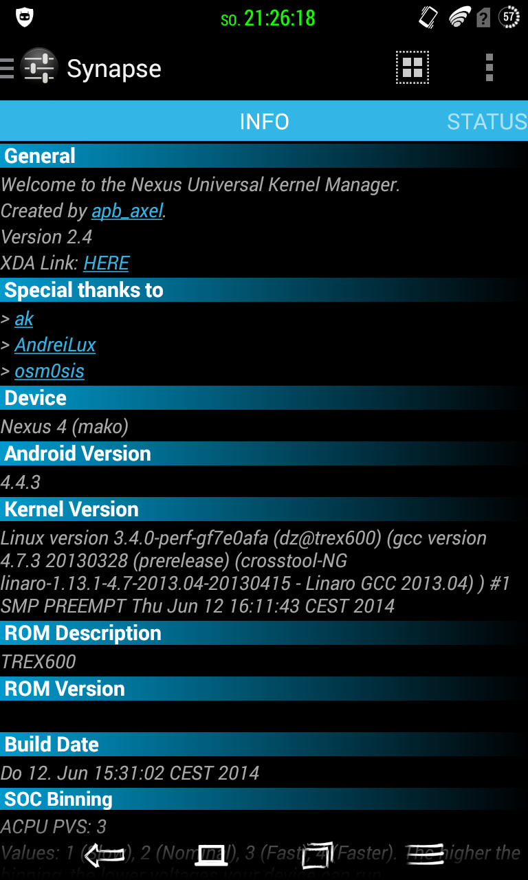 Synapse an sich ist eine App für die "Kernel Steuerung bzw Einstellungen"