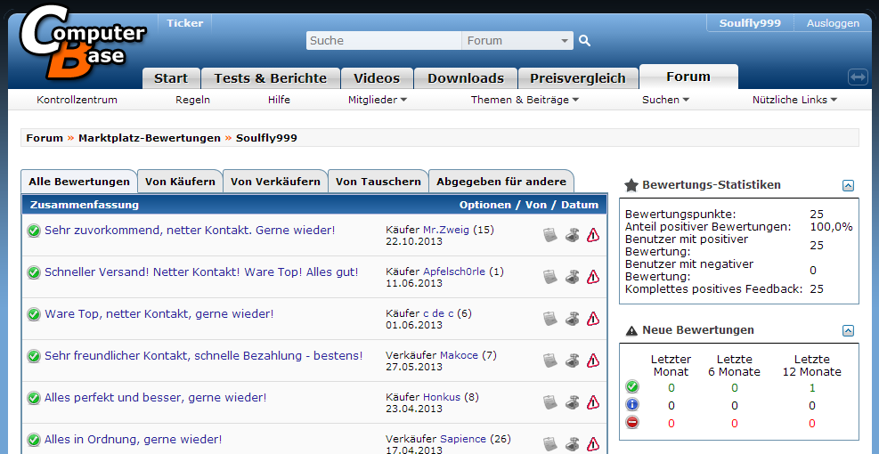 Besitze auch noch zig Bewertungen in anderen Foren mit Markplatz wie bei appdated und http://www.hardwareluxx.de/