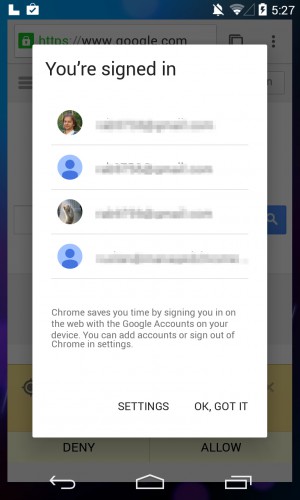 Was man hier auf den Screens sehen kann, sind Details die man in der Taskbar sehen kann. Man sieht ein weißes "L" was für die USB Debugging Funktion stehen kann, dann eine weiße Glocke die man eigentlich nur aus Google+ kennt und vieleicht für den Ruhemodus angedacht sein könnte. Weiterhin kann man die Einflüsse von Quantum Paper erkennen für den Google Chrome Browser. Was man noch sehen kann ist, dass Google auf eine Karten basierte App Ansicht überzugehen scheint was dem Multitasking weiter entgegen kommt. Sehr spannend wird morgen sein ob Google schon Android 5.0 präsentiert oder erst im laufe des restlichen Jahres, und dazu noch die Geschichte mit 64 Bit. Das wäre für den morgigen Tag schon das erste High Light der Google I/O.