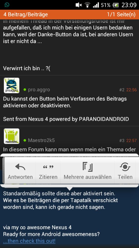 Über Tapatalk geht's auch nicht. Da werden gegebene auch nicht angezeigt