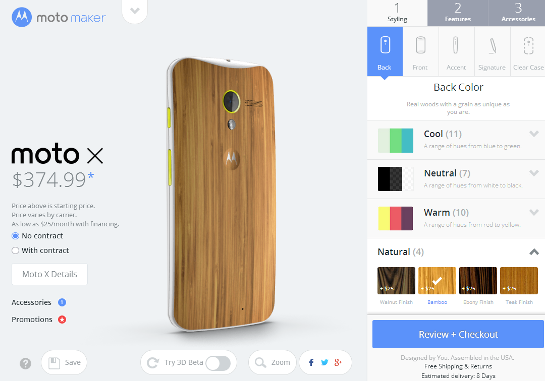 Moto 360 mit Moto Maker Auswahl des Armbands und Gehäuses