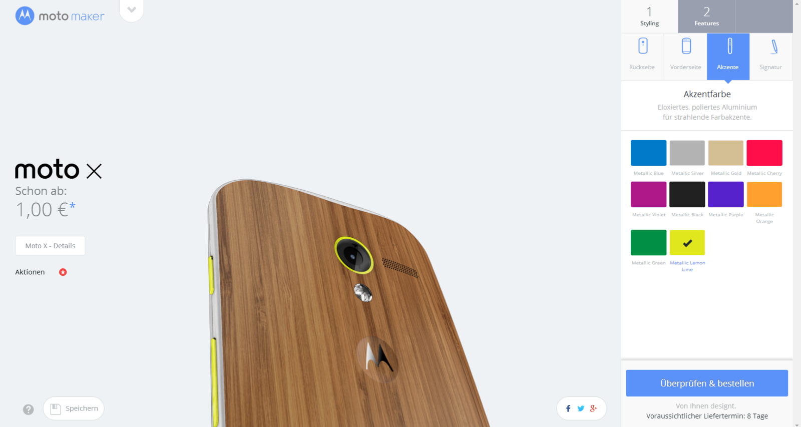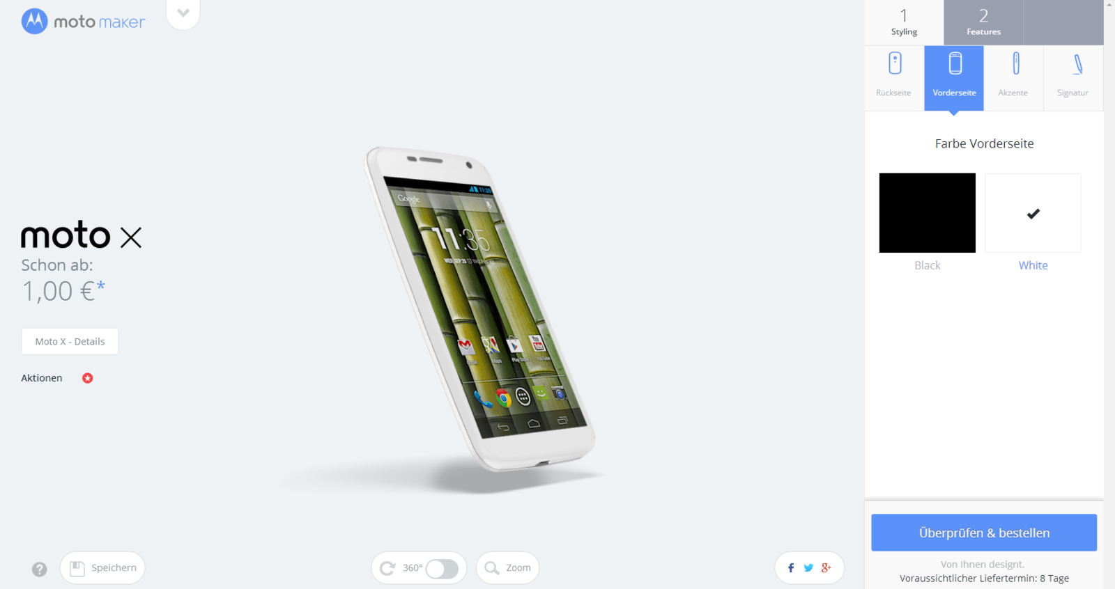 Nun ist soweit Motorola hat seine Moto-Maker Seite in Deutschland gestartet. Ihr könnt jetzt dort nach belieben euer eigenes Moto-X individuell anpassen so wie Ihr das möchtet.