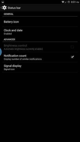 Status bar Brightness control