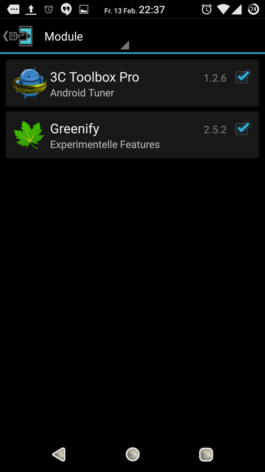 Greenify bekomme ich noch nicht mit den experimentellen Features gestartet.