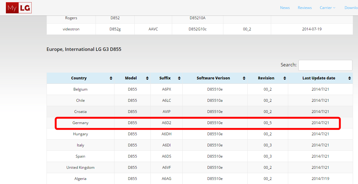 Doch etwas überraschend taucht jetzt eine neue LG G3 Version in der Firmware Aufstellung unter mylgphones auf. Ob das nun ein offizielles Update ist oder nur eine spezielle Provider-Version ist leider nicht ersichtlich. Als Suffix wird hier A6D2 angegeben. Dieser Suffix taucht in der Aufstellung nur ein einziges mal auf!? Es wäre natürlich möglich, dass dies nur eine spezielle Version für Vodafone - D2 ist, wenn man sich auf die reine Bezeichnung bezieht.