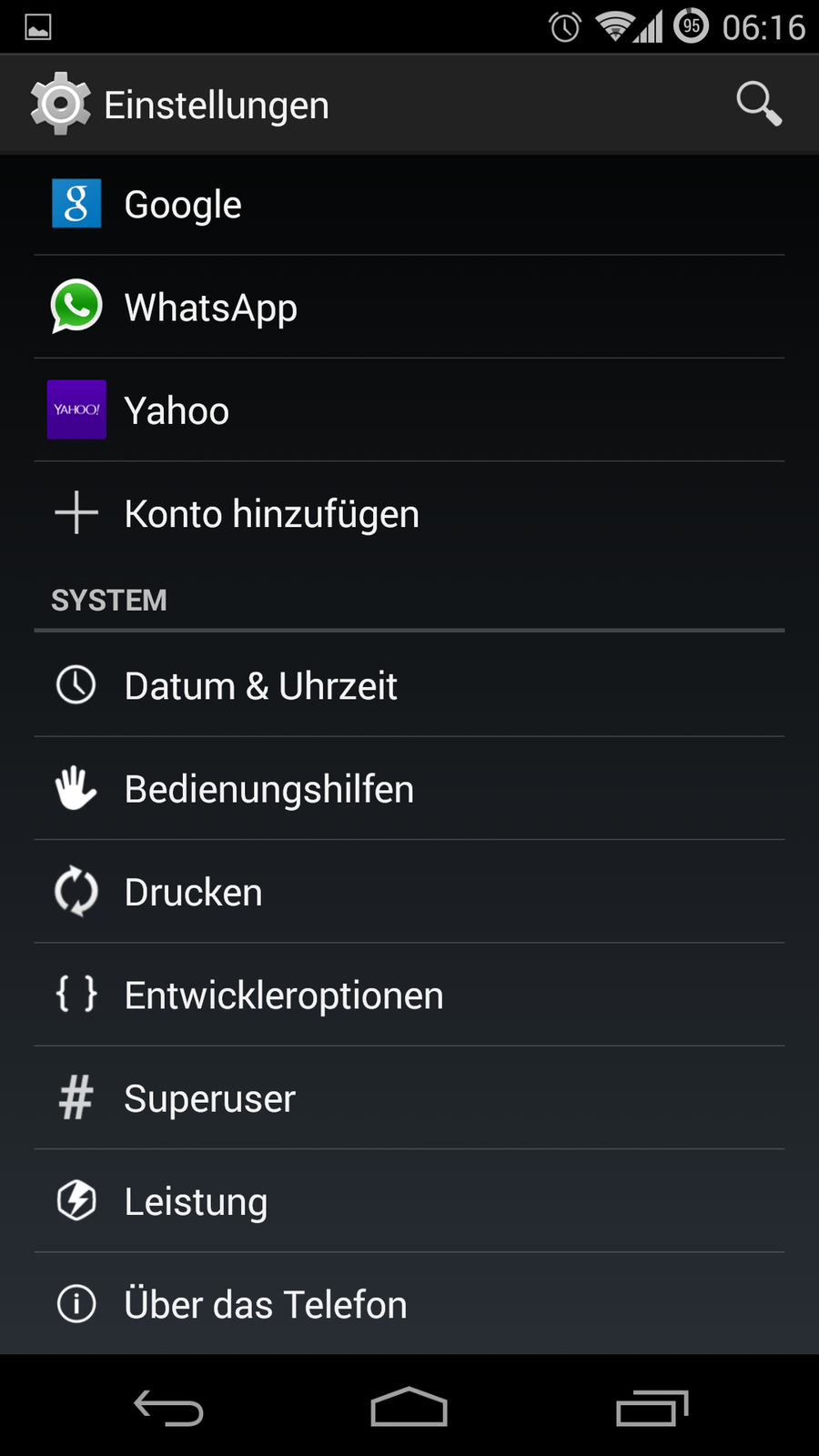 - bei manuellem Update: Wipe Cache, Wipe Dalvik Cache