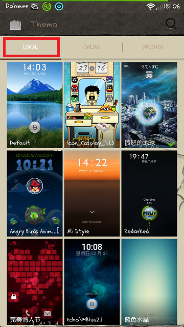 Online - über Miui verfügbare Themes auf deren Server (manche sind nur mit Mi Dollars zu erwerben - fällt für uns aus)