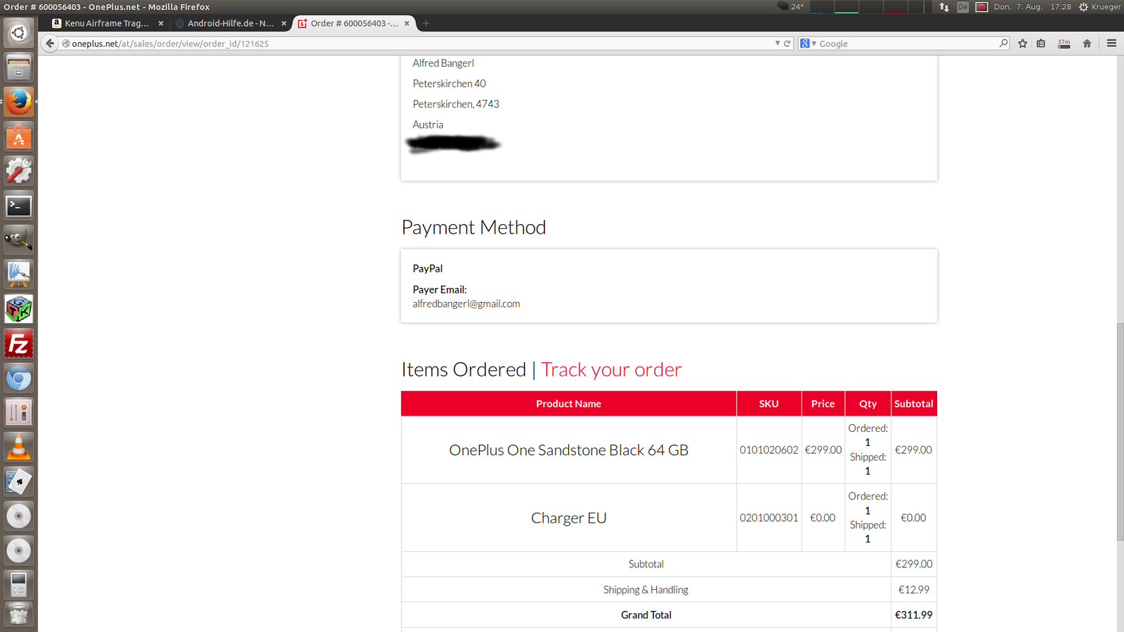 • Naja, das es nicht 303,99 gekostet hat sieht man ja auf dem Bild. Oneplus hat ja Versandpreise von 4,99 - 25 €