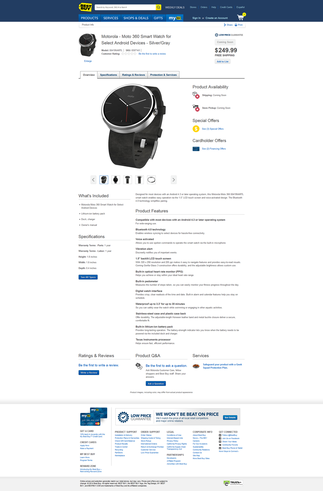 Der US- Elektrohändler Best Buy veröffentlichte gestern auf seiner Hompage eine Verkaufsseite für die Moto 360, dadurch sind jetzt auch endlich technische Details und der Preis bekannt geworden.