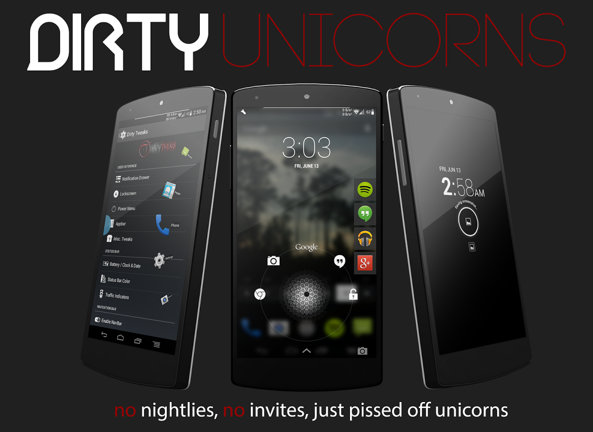 hier möchte ich euch eine super AOSP Rom vorstellen die ich seit einigen Tagen nutze - die Dirty Unicorn, basierend auf der OmniRom (4.4.4) und mit sehr viel Einstellungsmöglichkeiten.