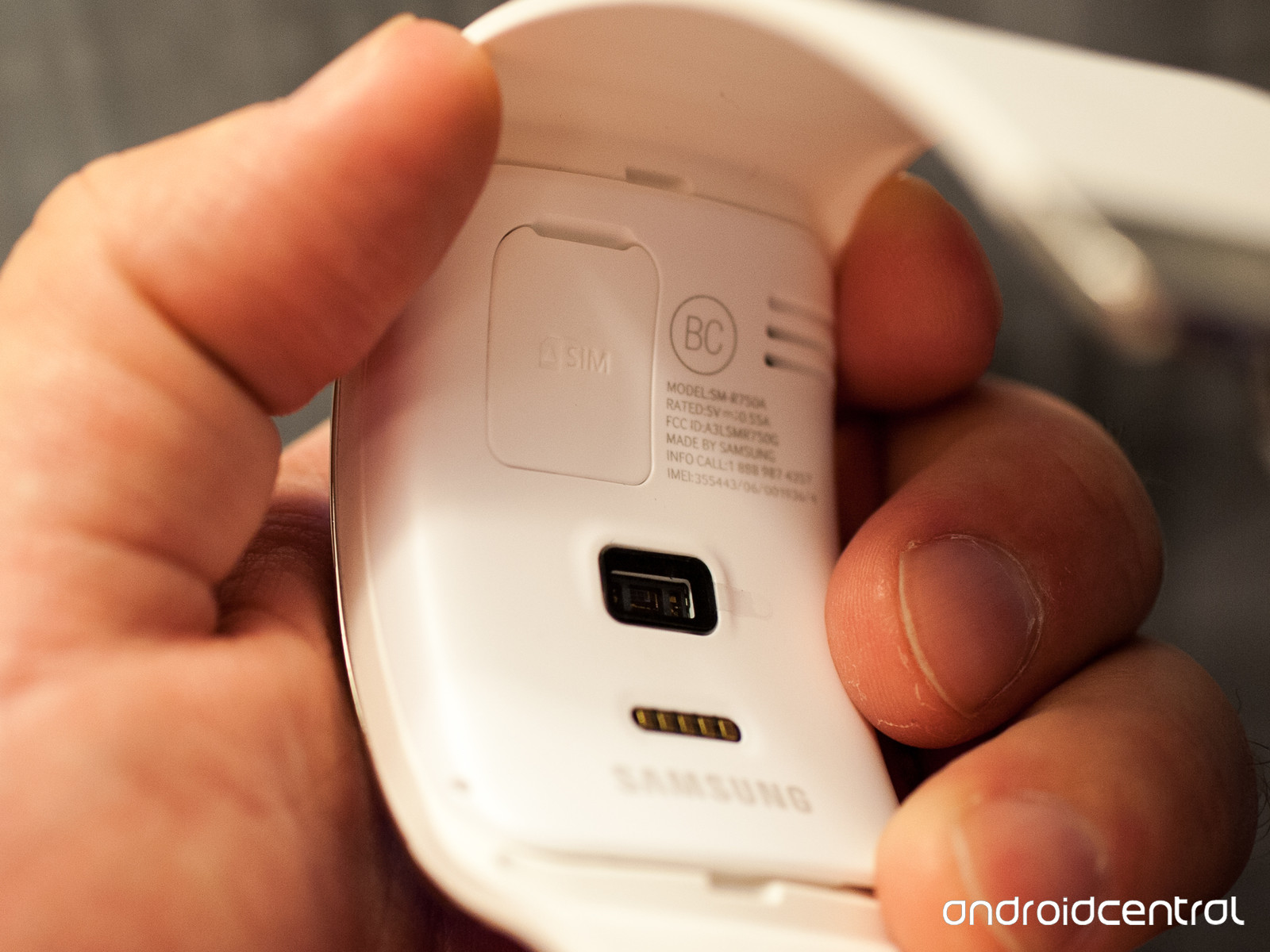 Weitere Besonderheiten sind, dass sich unterhalb des Displays sich ein physischer Homebutton befindet, links und rechts davon liegen zwei Sensoren, der Helligkeits- und der UV-Sensor. An der Unterseite ist ein Pulsmesser und die Kontakte für ein Ladestation. Eine weitere Besonderheit ist es, dass die Gear S einen Steckplatz für eine Nano-SIM-Karte hat, womit man die Smartwatch unabhängig vom Smartphone benutzen kann. Zuletzt sei noch zu erwähnen das die Gear S nicht mit Android Wear sondern mit dem hauseigenen Tizen läuft, was vielleicht der Einzige Haken ist?!