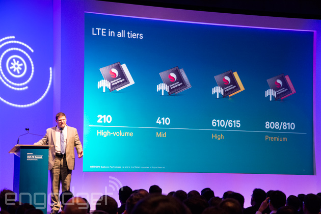 Der Snapdragon 210 ist ein Quad Core-Prozessore mit 4x ARM Cortex A7-Kernen sowie einer Adreno 300-GPU. Das integrierten LTE-Moduls unterstützt Cat4 bis zu einer Geschwindigkeit von 150 Mbps, ebenso ist auch Dual SIM-Unterstützung mit an Bord. Gleichzeitig unterstützt der SD210 Aufnahmen von Fotos mit bis zu 8 MP, Videoaufnahmen in Full-HD mit H.265. Außerdem ist das Feature Quick Charge 2.0 Feature mit an Bord, welches die Akkus um bis zu 75 Prozent schneller als gewöhnlich aufladen soll.
