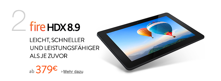 Das Spitzenmodell Fire HDX 8.9 kostet mit 16GB 379 Euro, mit 32GB 429 Euro und mit 64GB 479 Euro. Das Display ist 8,9 Zoll groß mit einer Auflösung von 2.560 x 1.600 Pixel. Der Prozessor ist ein Snapdragon 805 Quad-Core-Prozessor mit 2,5 GHz.