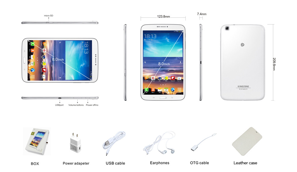 • Das KingPad 1 von Kingzone ist die perfekte Begleitschaft für Business User. Dieser misst nur 7,9mm dick und wiegt 314 gramm. Somit eignet sich dieser perfekt für den Transport. Angetrieben wird das KingPad 1 mit einem 1.3GHz Quad Core Prozessor. Dieser garantiert ruckelfreies Arbeiten und multitasking. Die Auflösung beträgt 1280×800 Pixeln. Diese mag nicht besonders hoch sein. Jedoch war mein erster Eindruck ein richtiges Wow Effekt, als ich diese in Händen trug und anschaltete. Wie es sich für ein Business Tablet gehört wird ein SIM Karten Slot sowie ein SD Karten Slot angeboten. Auch die Telefonie darf hier selbstverständlich nicht zu kurz ausfallen. So unterstützt es 3 Netzwerk (WCDMA und GSM). Außerdem beinhaltet es Bluetooth 3.0 sowie Wifi. Somit ist man für jede Art von Kommunikation und Datentransfer gewappnet. Die Kamera ist bei einem Tablet PC wie gewöhnlich nicht das Highlight, jedoch sollte diese doch nicht fehlen. So kommt dieser in einer Kombination von 8MP + 2MP. Der Akku misst 3500mAh und soll laut Hersteller für ca. 240 Stunden Stanby sowie 10 Stunden Internetsurfen ausreichen. Um sich dann mal von der stressigen Arbeit zu entspannen, kommt das KingPad mit einem Dual Box Sound System um besten und authentischen Klang bei der Musik zu enthalten.